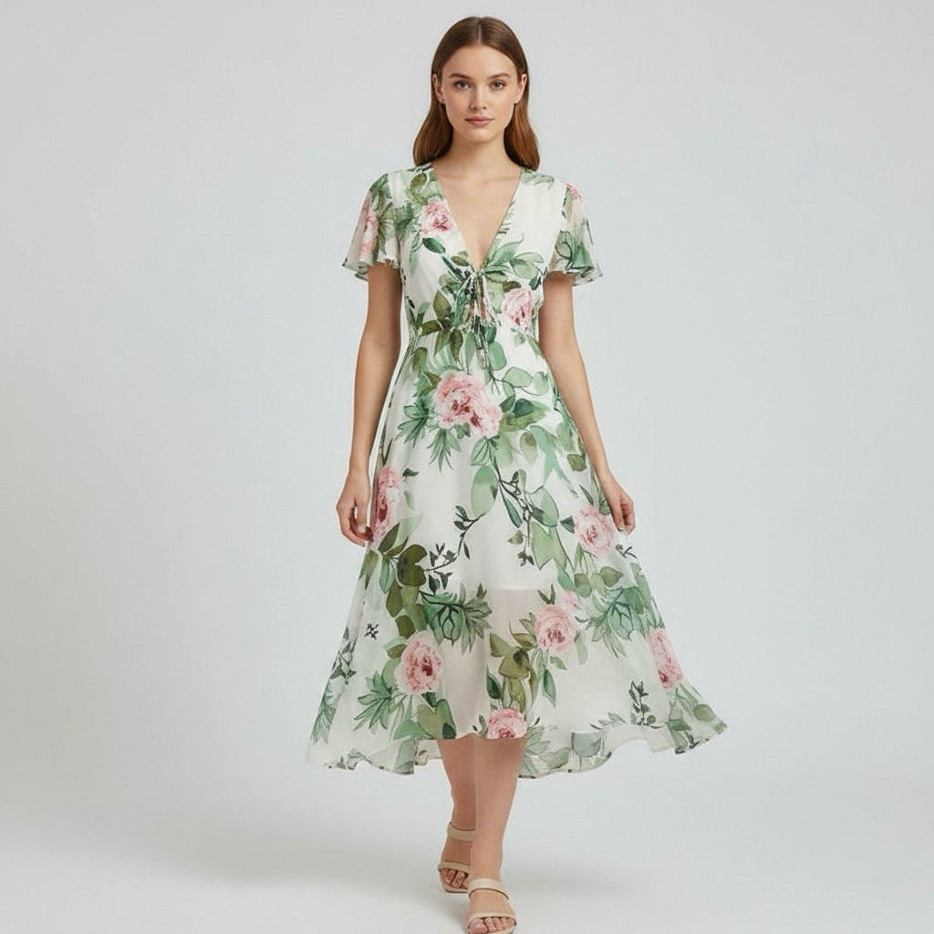 - Fácil de combinar con calzado de temporada – Este vestido midi floral para mujer se adapta naturalmente a sandalias y zapatos ligeros.