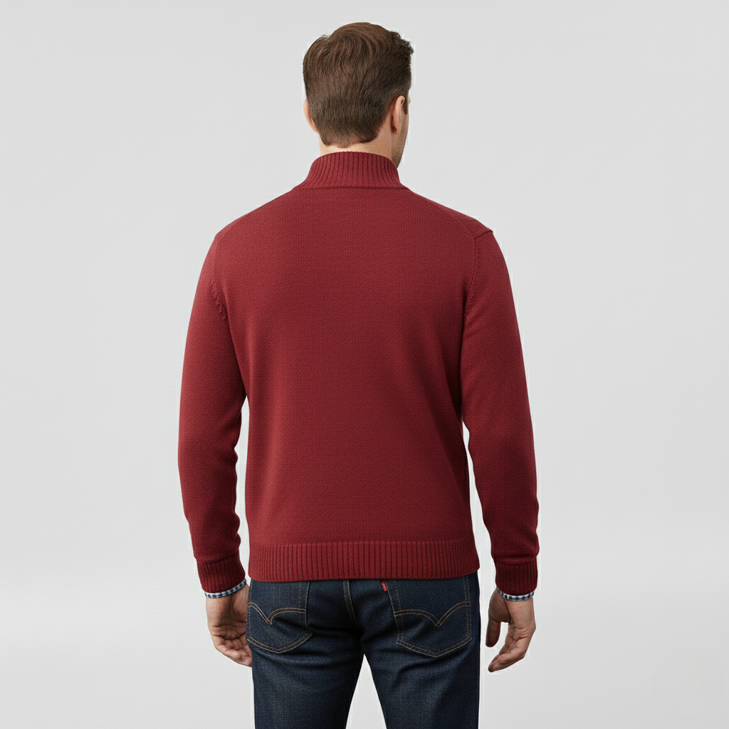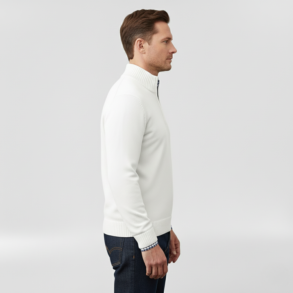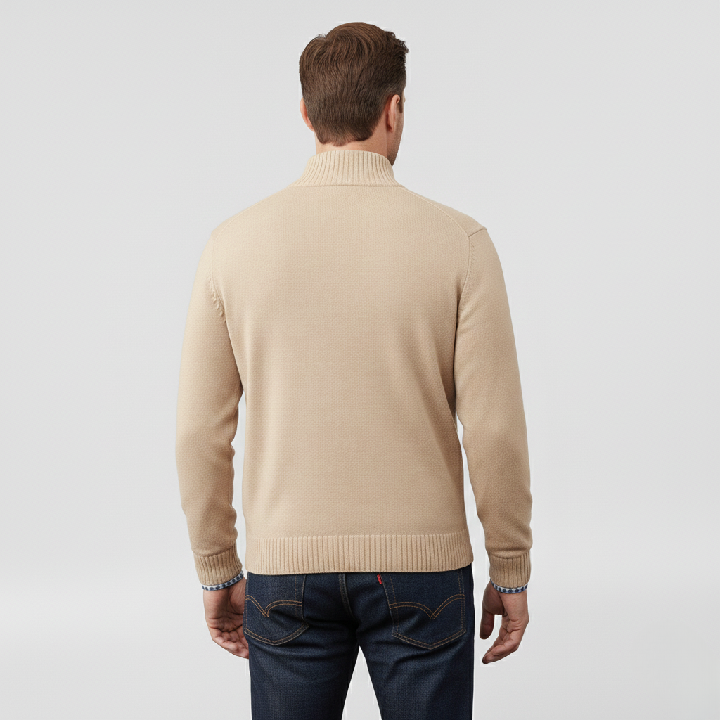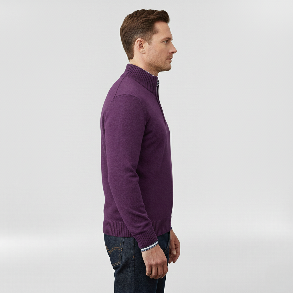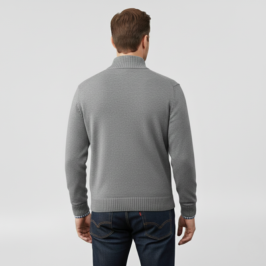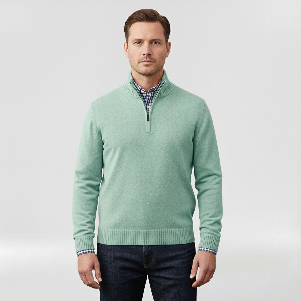 Pánský svetr s polovičním zipem navržený pro každodenní pohodlí a vrstvení.