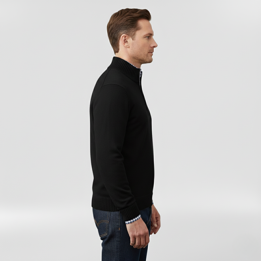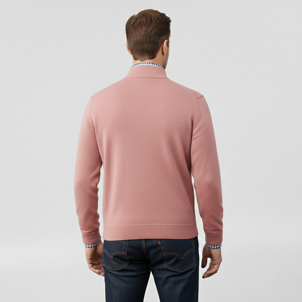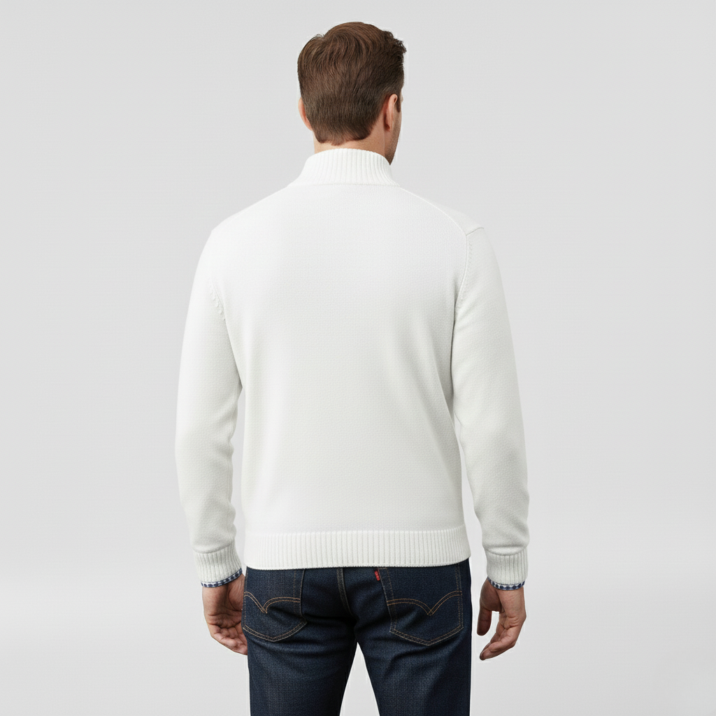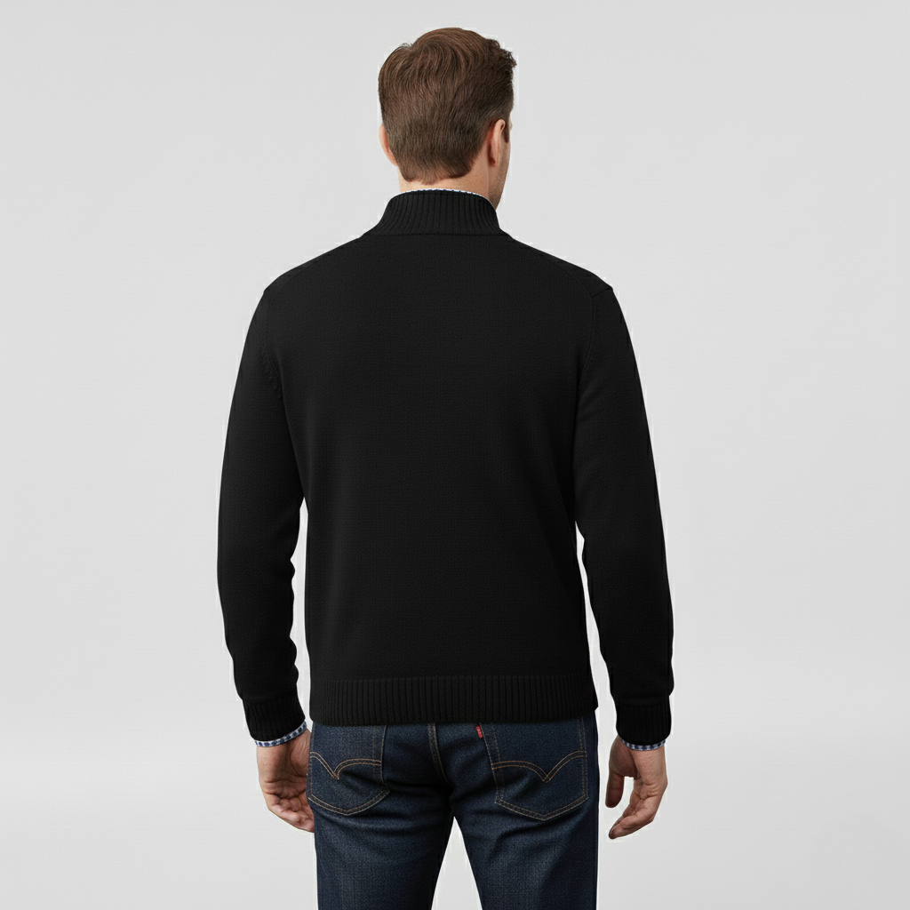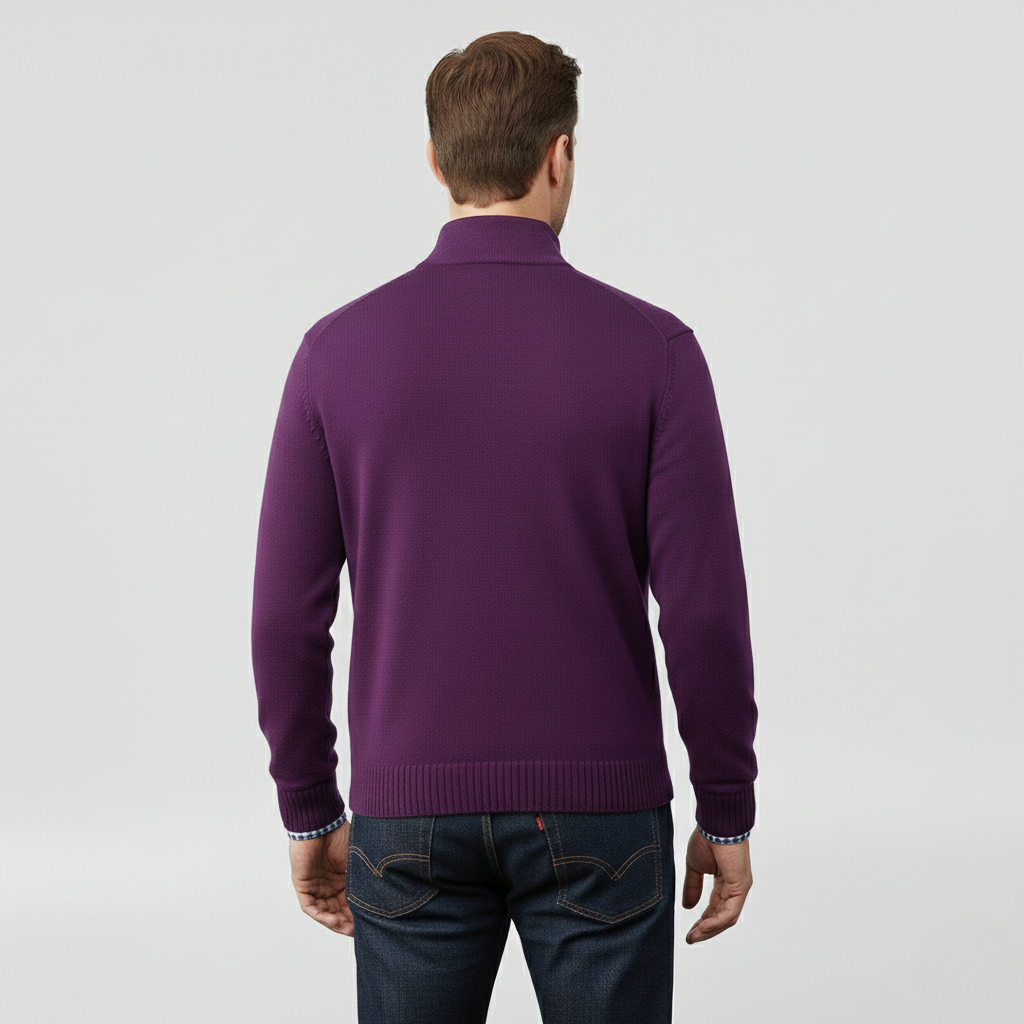 Pánský svetr s polovičním zipem navržený pro každodenní pohodlí a vrstvení.