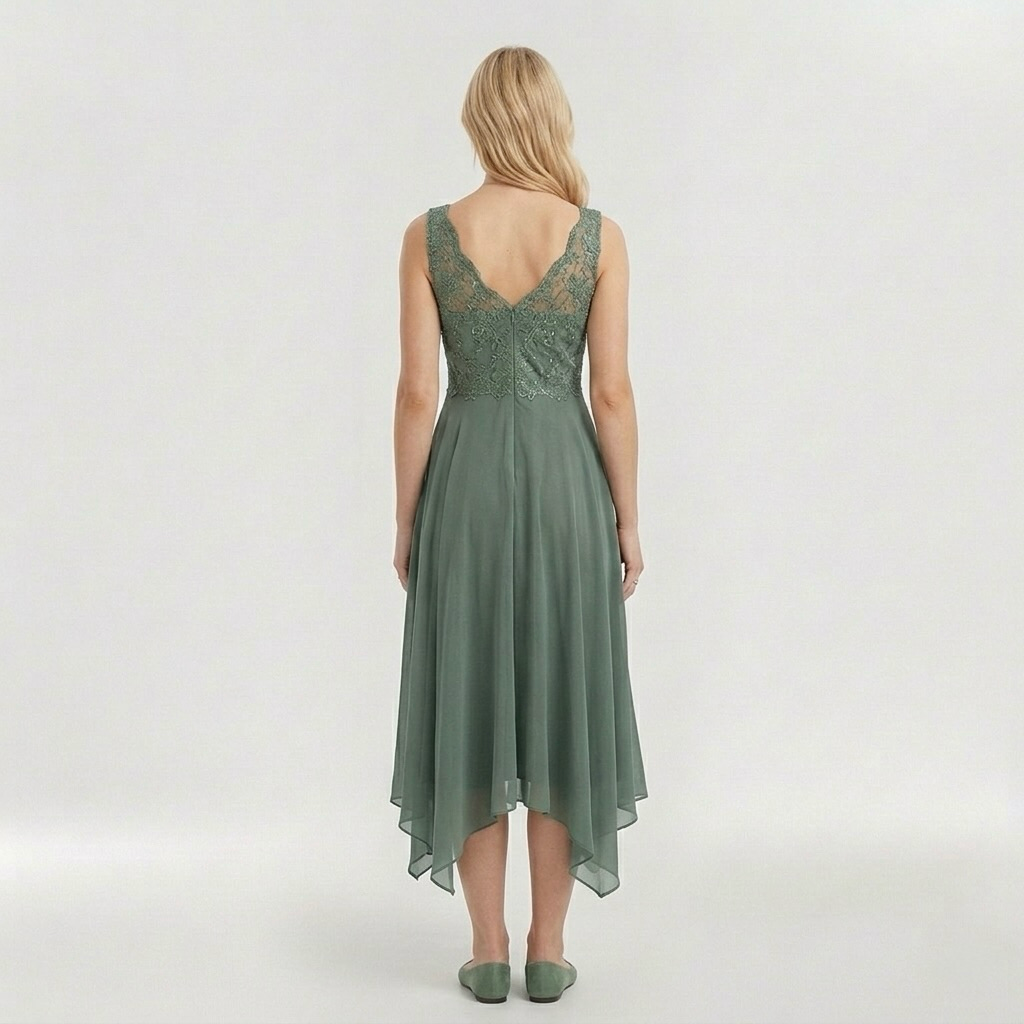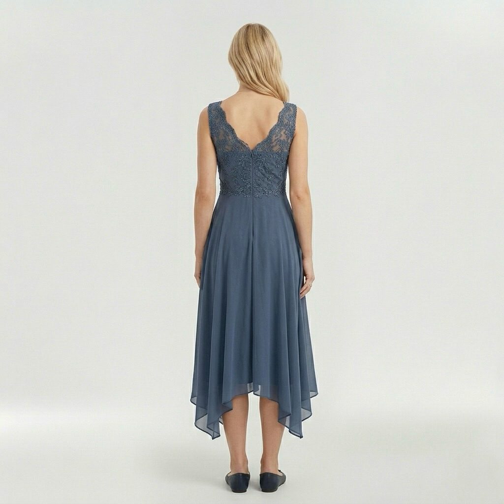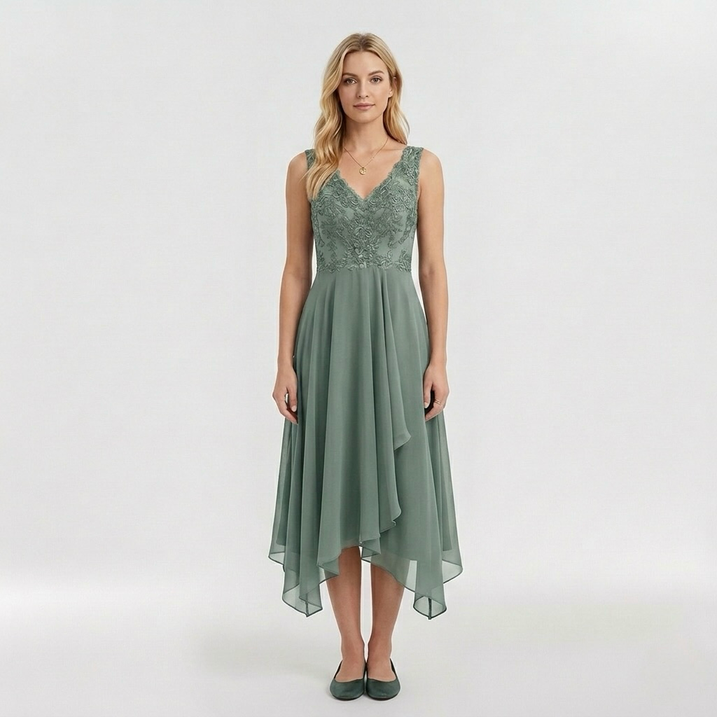 Βραδινό φόρεμα για γυναίκες με κομψό σχέδιο και ασύμμετρη, ρέουσα φούστα.