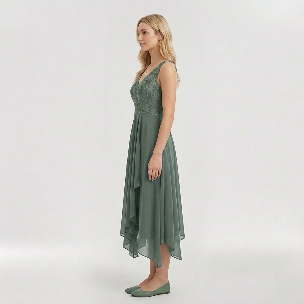 - Ρέουσα ασύμμετρη φούστα – Προσθέτει κίνηση και κομψότητα στην εμφάνιση.