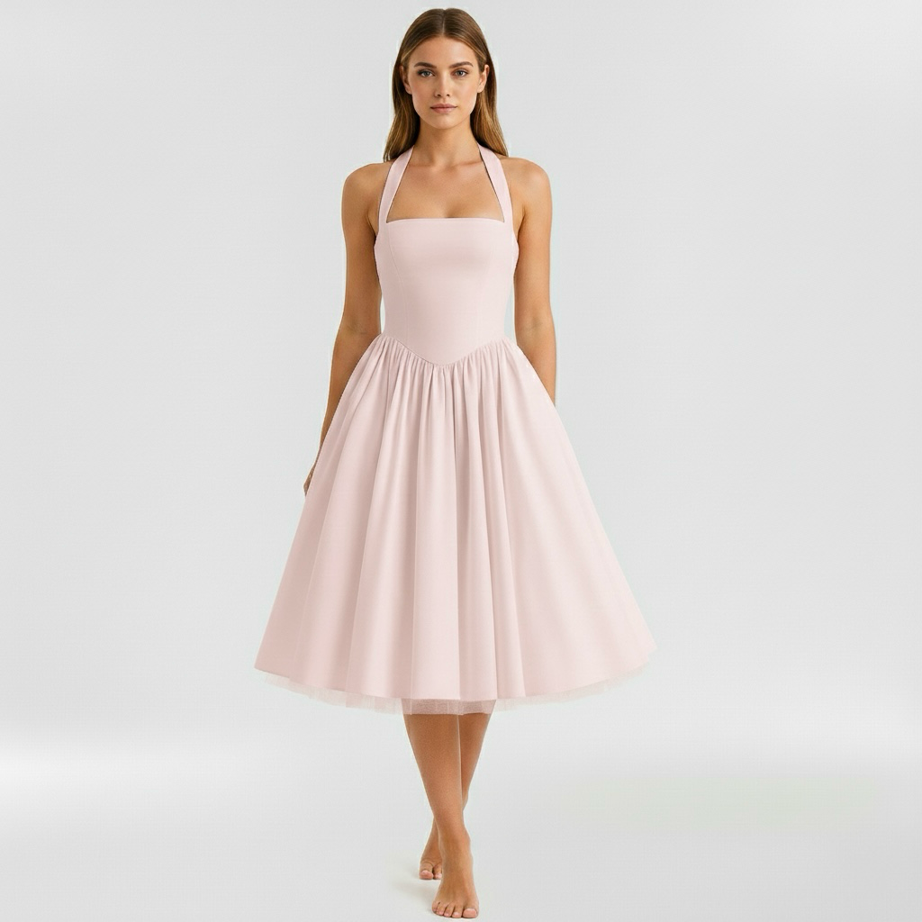 Un abito midi a vita stretta e gonna svasata senza maniche affidabile che ti aiuta a sentirti pronta per eventi con comodità e un aspetto curato.